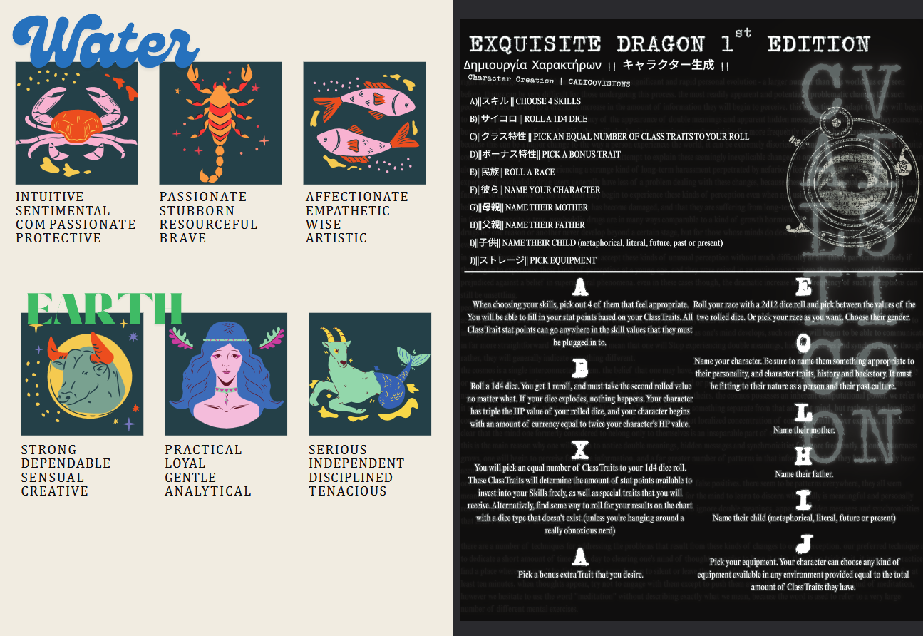 Organized by Jeto of Stone Soup and CALICOVISIONS, Exquisite Dragon is a game where each mechanic was crafted by a different designer in complete isolation over the course of a single month, and then stitched together to create a full tabletop role-playing system.